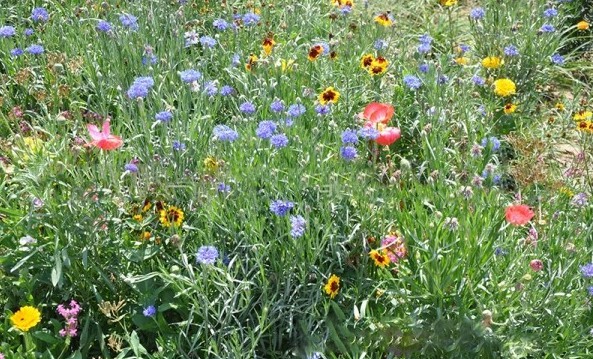 炫彩組合的花種包含有虞美人、黑心菊、松果菊、宿根亞麻等等,這些花種花色非常艷麗,而且花型也各不一致。