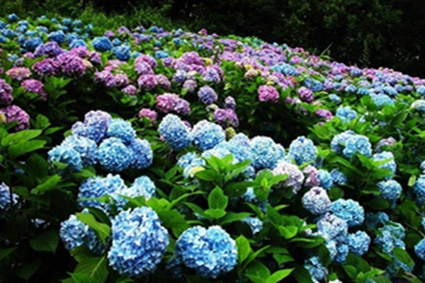 藍紫色的繡球花其花型大,花色豐富,常被種植到園林中欣賞。