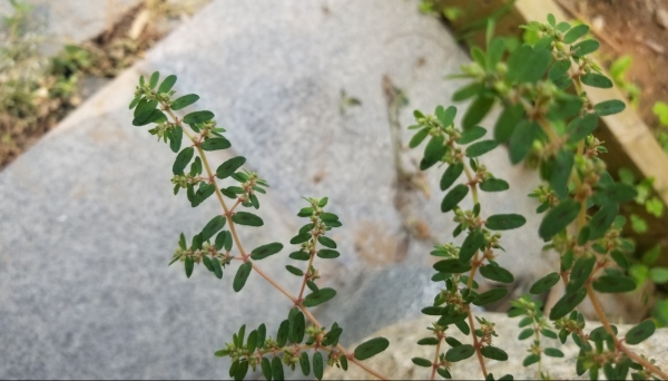 斑地錦是大戟科、大戟屬一年生草本植物。根纖細,莖匍匐,葉片對生,長橢圓形至腎狀長圓形。葉面綠色,葉背淡綠色或灰綠色,兩面無毛,花序單生于葉腋,基部具短柄,腺體黃綠色,橫橢圓形。