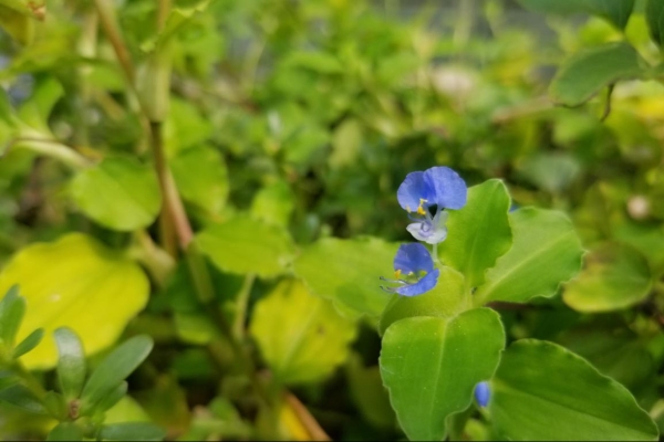 鴨跖草別名碧竹子、翠蝴蝶、淡竹葉等。屬鴨跖草科、鴨跖草屬,一年生披散草本。鴨跖草葉形為披針形至卵狀披針形,葉序互生,匍匐莖,花朵為聚花序,頂生或腋生,雌雄同株,花瓣上面兩瓣為藍色,下面一瓣為白色。